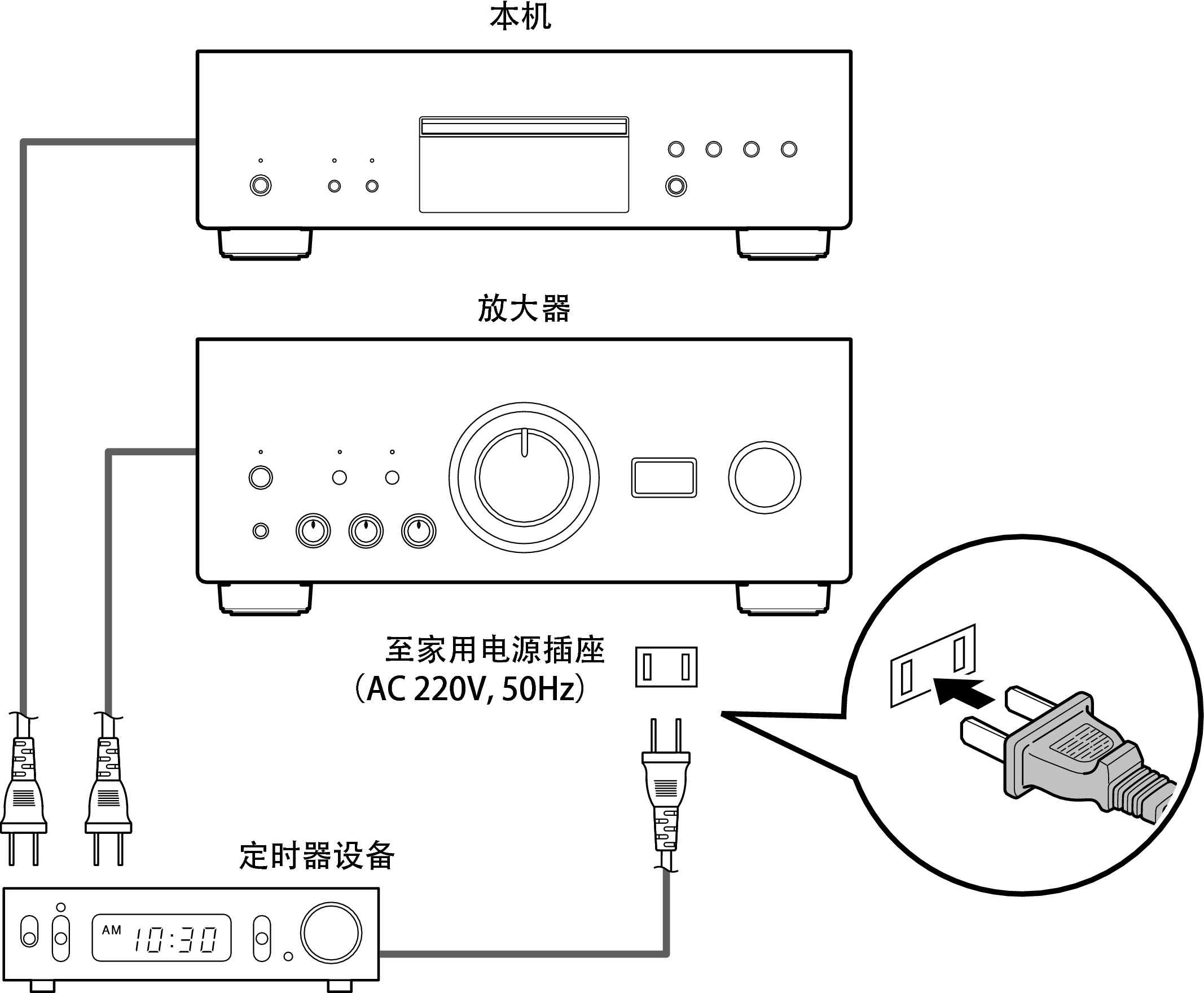当放大器和定时器设备连接至本机时,本机可执行定时器播放。(