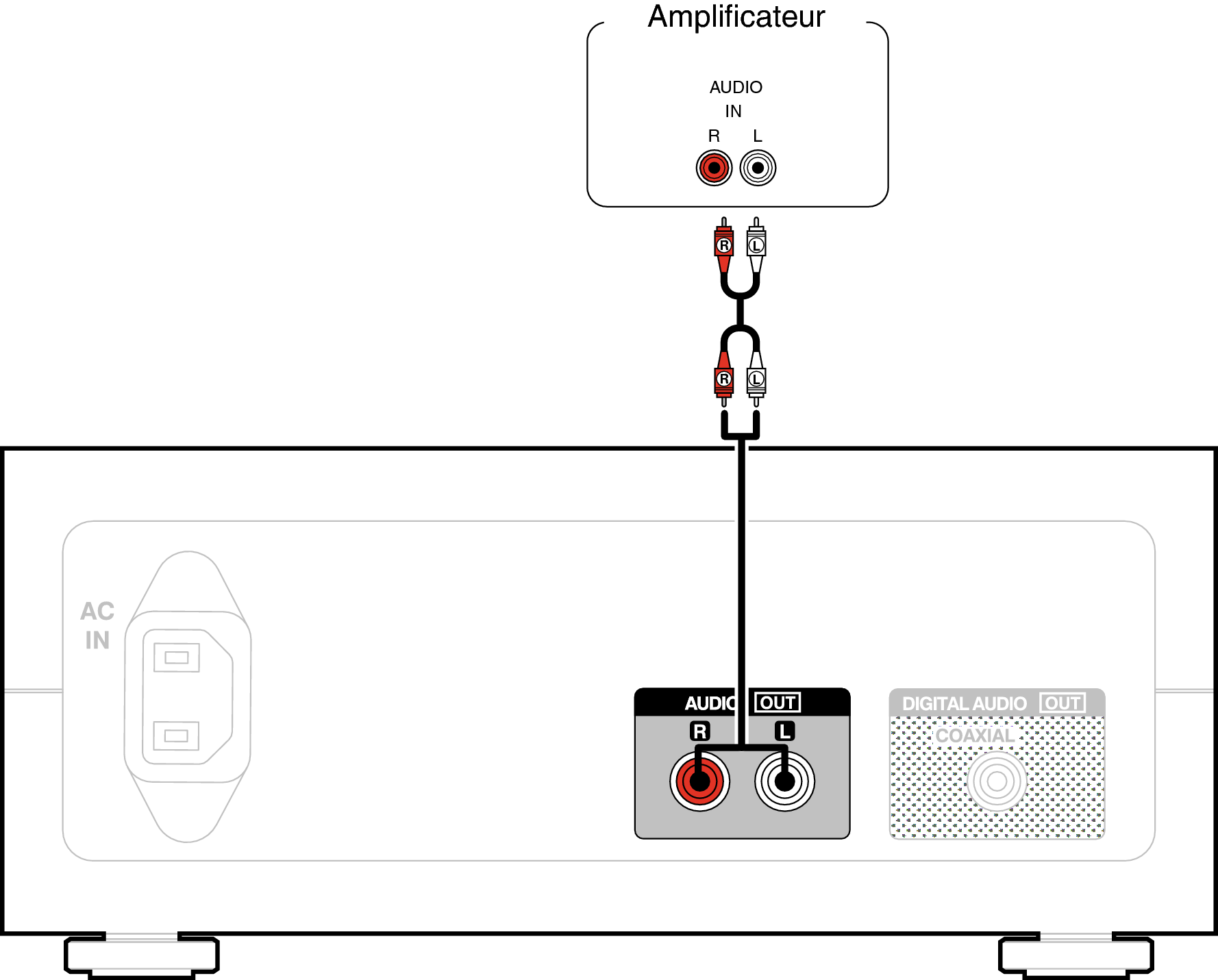 Vous pouvez raccorder cet appareil à un amplificateur à l’aide des bornes d’entrée audio analogique.
