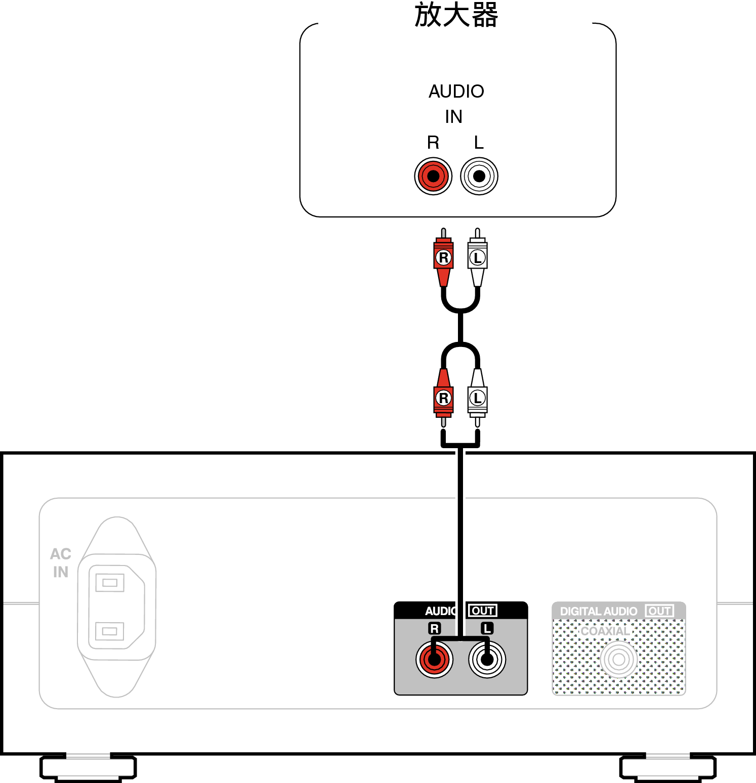 使用模拟音频输入端子可将本机连接到放大器。