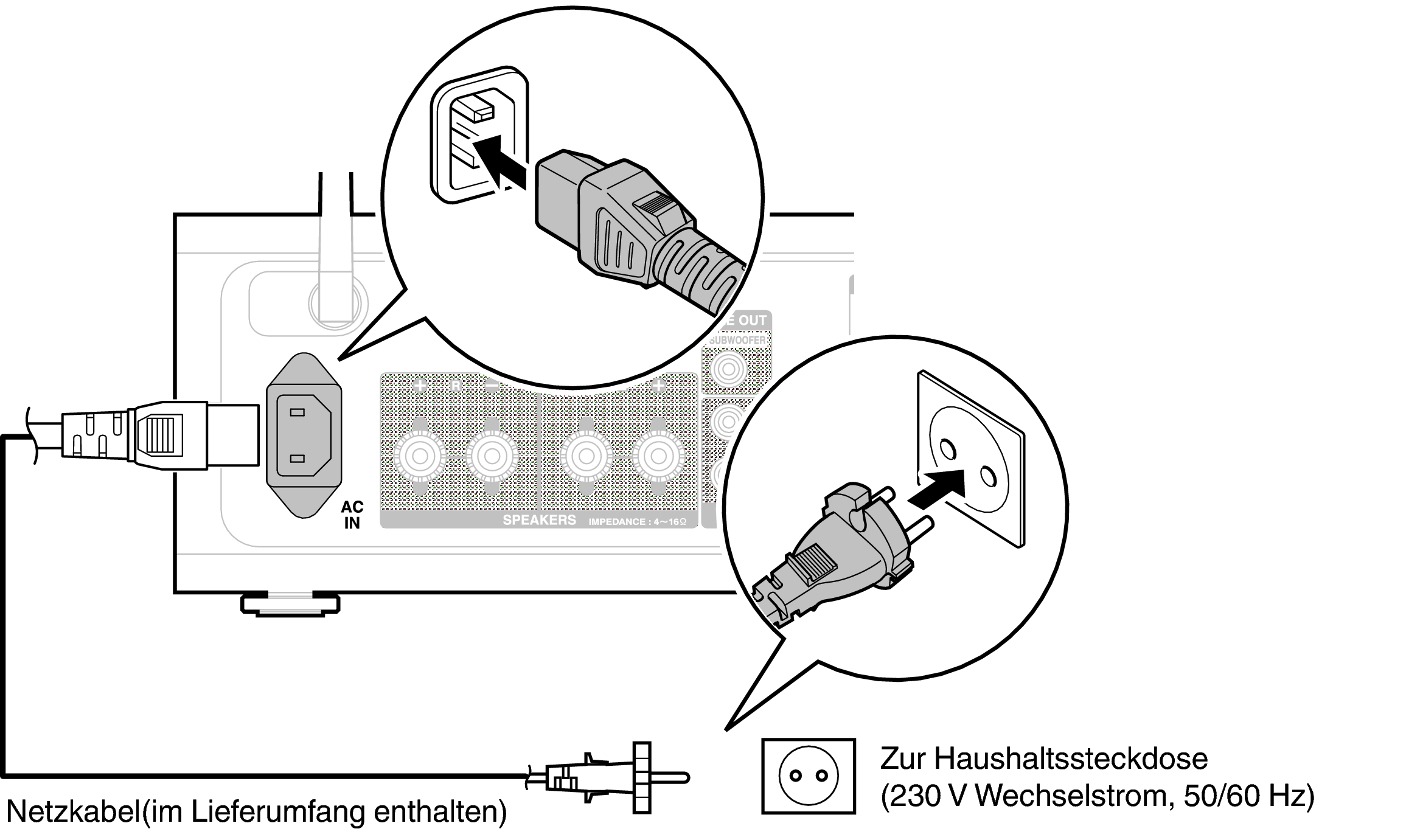 Wenn alle Anschlüsse hergestellt wurden, schließen Sie den Netzstecker an die Steckdose an.