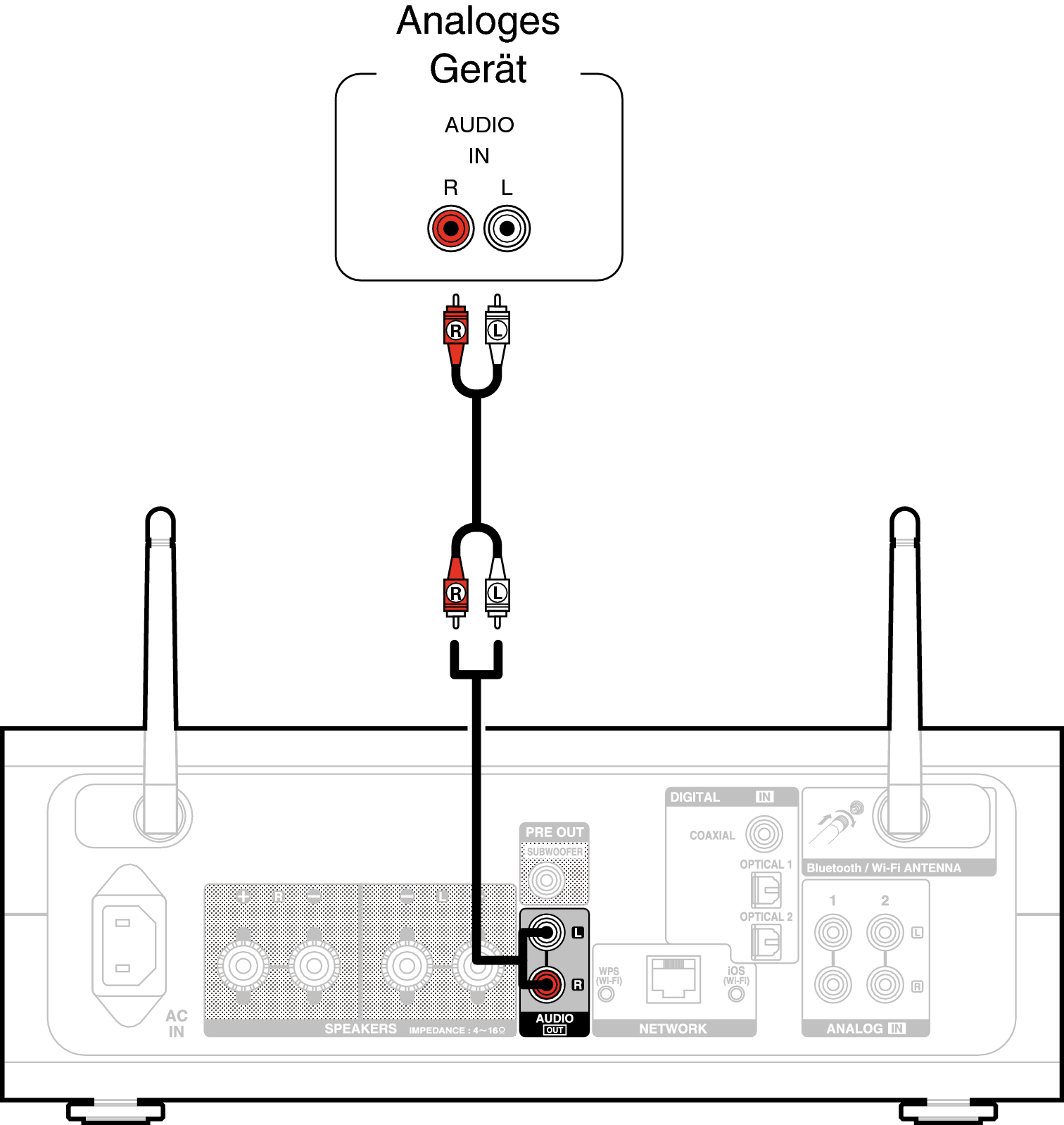 Über den analogen Audioeingang haben Sie die Möglichkeit, dieses Gerät an verschiedene andere Geräte anzuschließen.