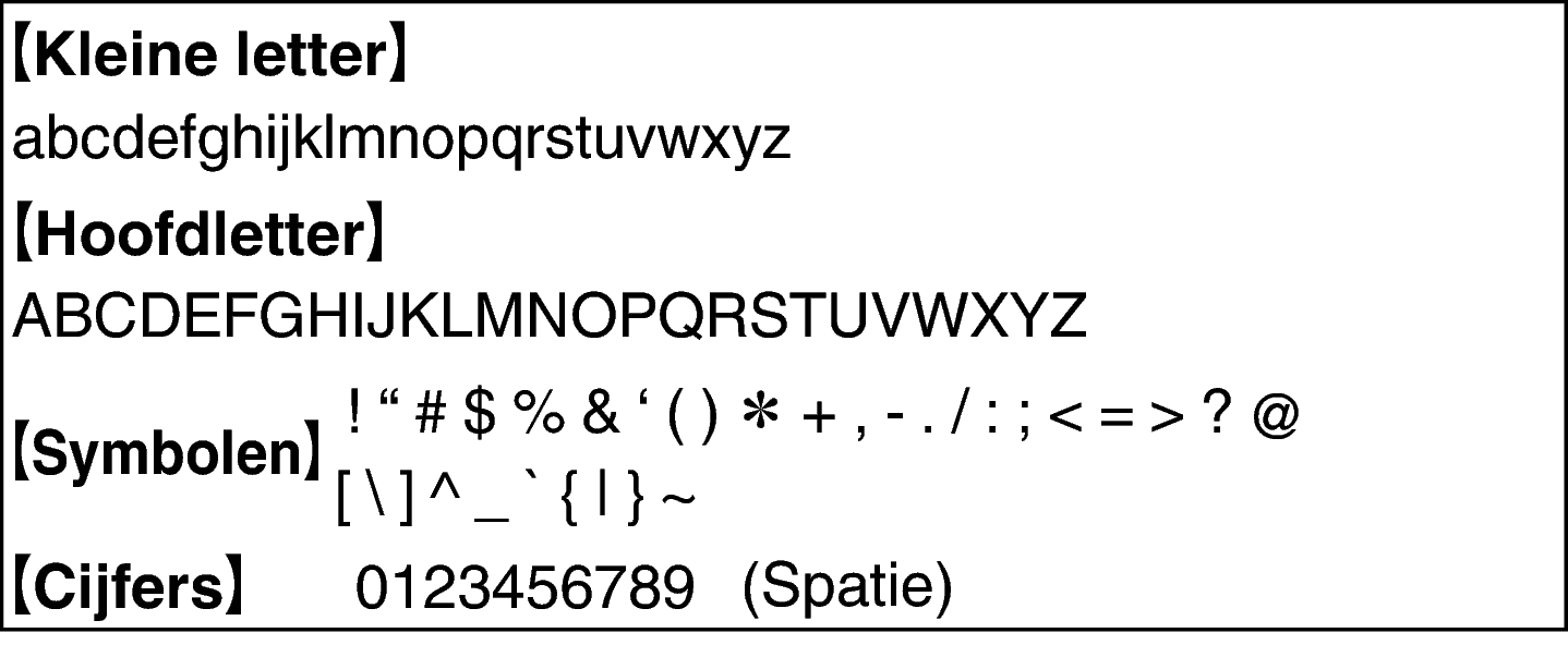 om het teken te wijzigen.Het type tekens dat kan worden ingevoerd wordt hieronder getoond.