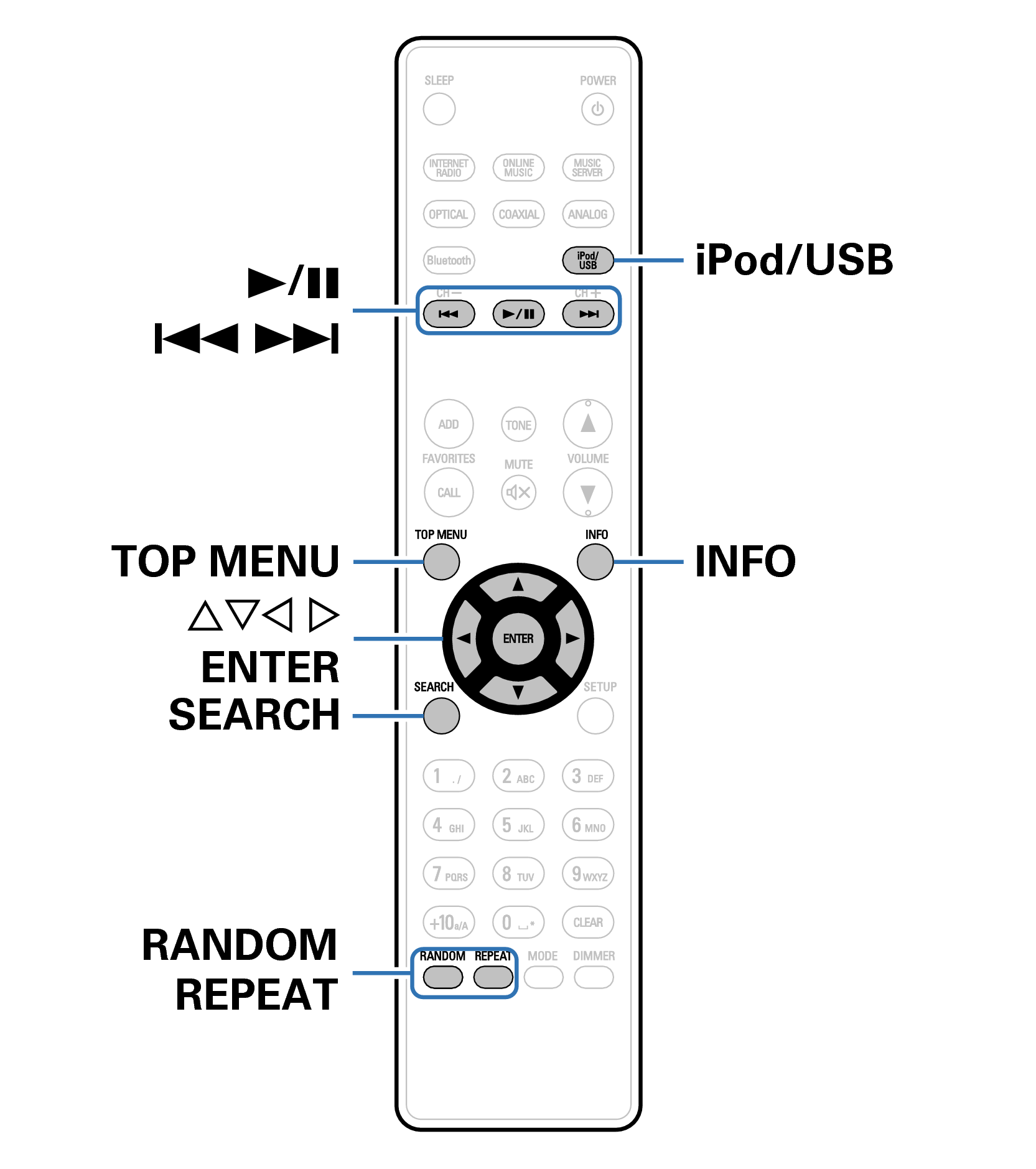 Muziekbestanden die op een USB-geheugenapparaat zijn opgeslagen, weergeven.