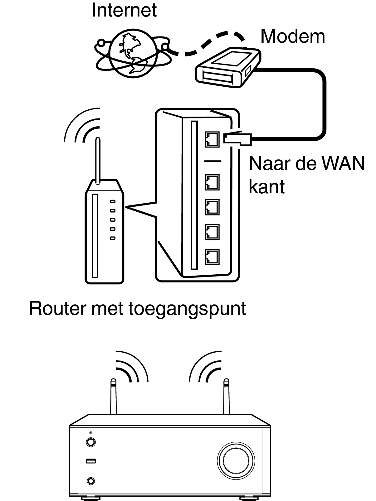 Het type van router dat kan worden gebruikt, kan per internetprovider variëren. Neem voor details contact op met uw internetprovider of computerwinkel.