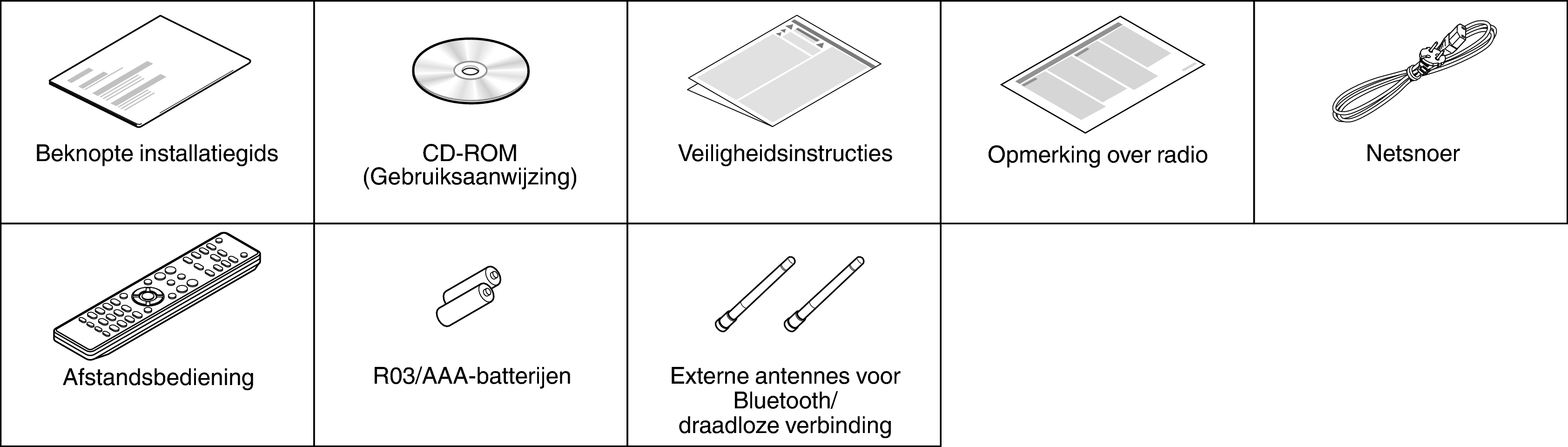Controleer of bij dit product de volgende onderdelen zijn meegeleverd.