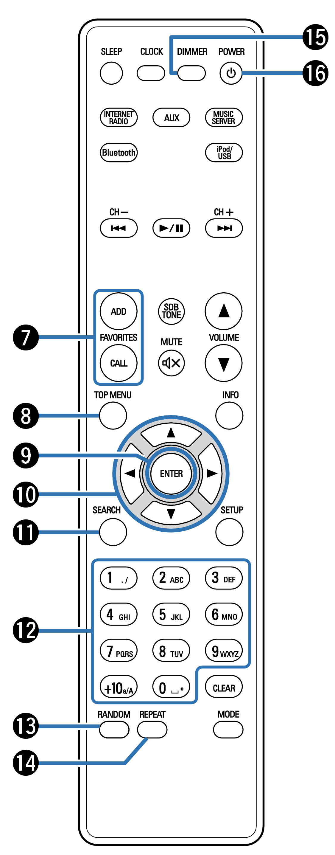 Pour ajouter des stations radio ou des fichiers à la liste des favoris, appuyez sur la touche ADD. lien