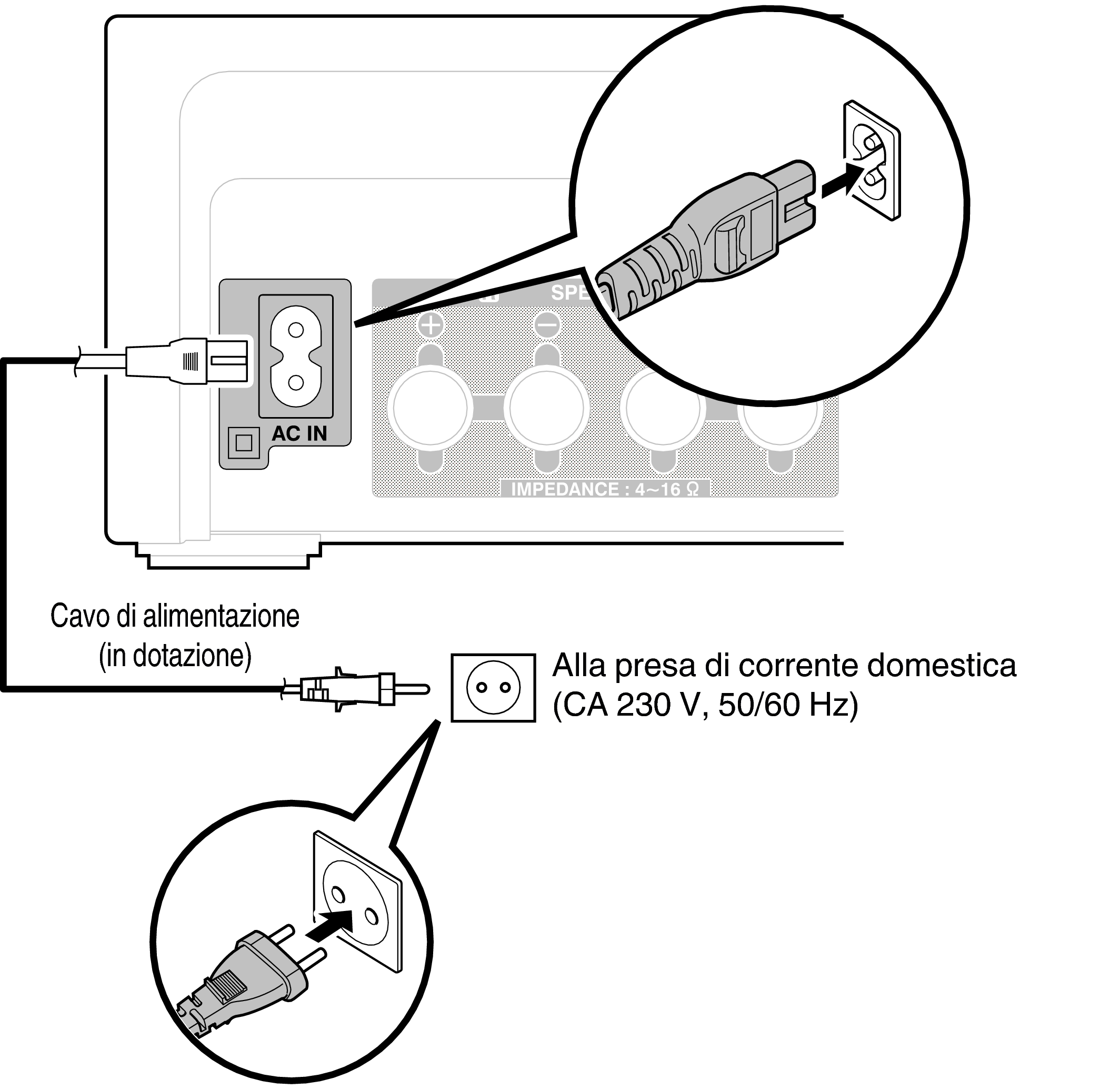 Dopo aver effettuato tutti i collegamenti, inserire la spina in una presa di corrente.