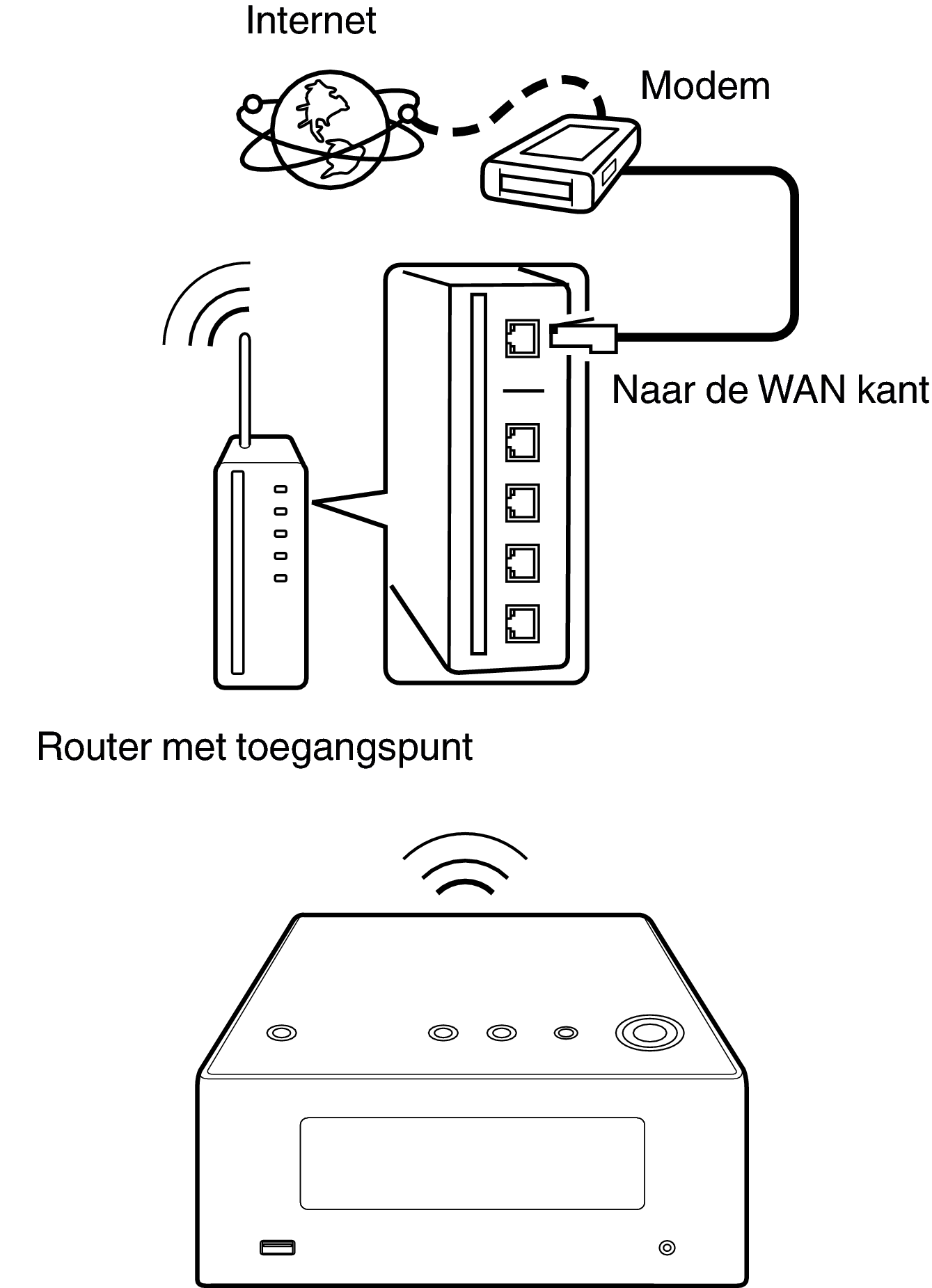 Het type van router dat kan worden gebruikt, kan per internetprovider variëren. Neem voor details contact op met uw internetprovider of computerwinkel.