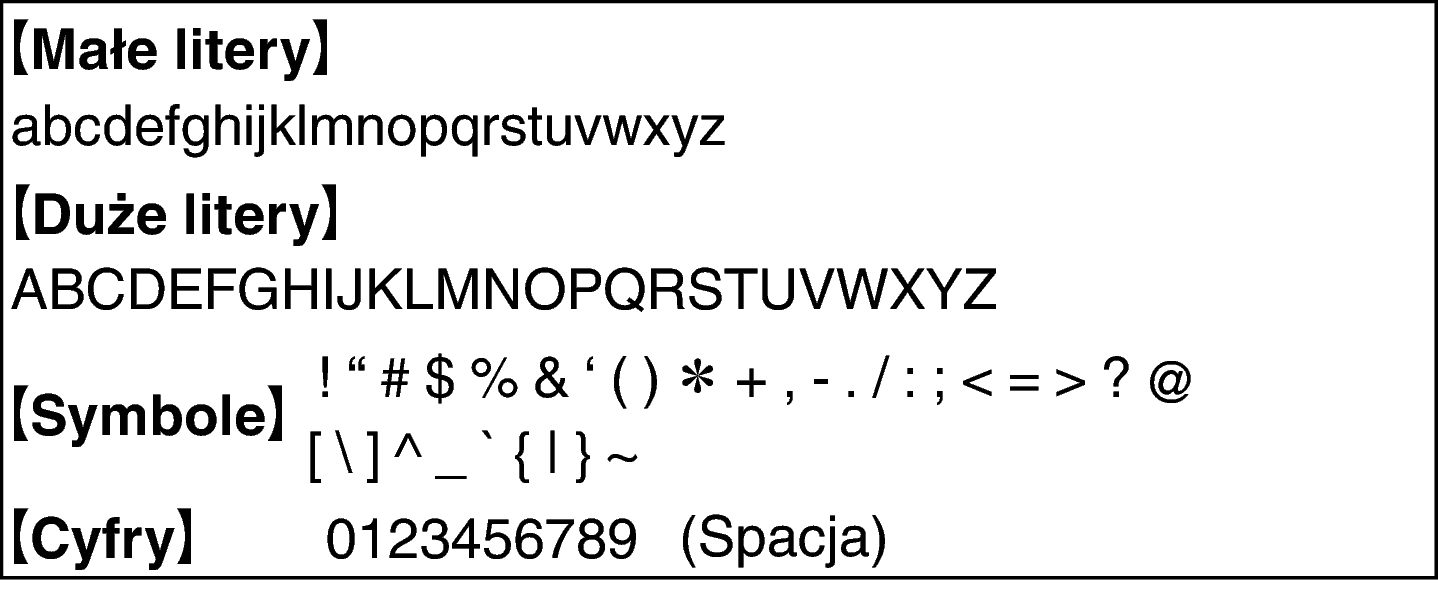 zmień wybrany znak.Typy znaków, jakie można wprowadzić prezentowane są poniżej.