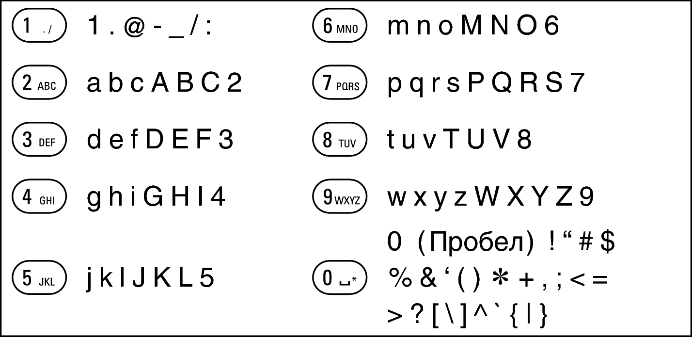Нажимайте 0 – 9, +10, пока не появится нужный символ.