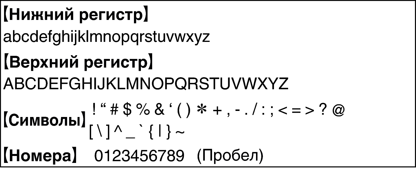 для изменения символа.Ниже перечислены типы символов, которые можно ввести.