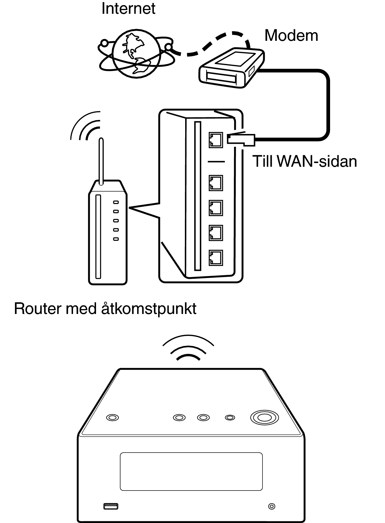Router-typer som kan användas beror på din Internet-leverantör. Kontakta din Internet-leverantör eller en datoraffär för närmare anvisningar.