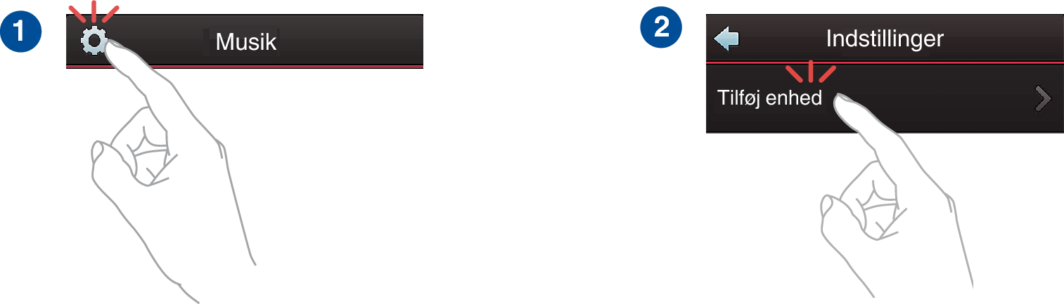 Du kan tilføje ekstra trådløse HEOS-enheder til dit HEOS-system ved at vælge “Tilføj enhed” i indstillingsmenuen i HEOS-app´en og følge instruktioner: