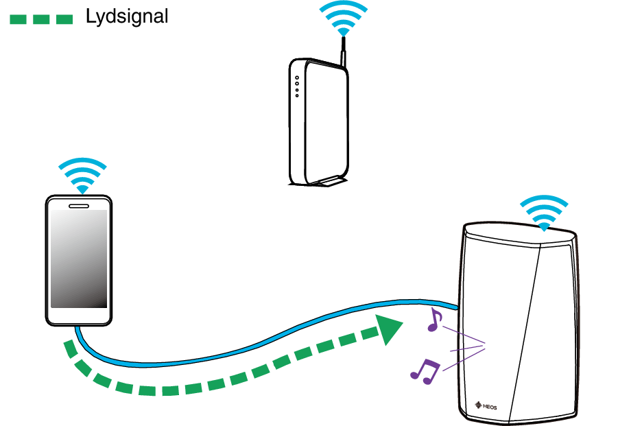 Lyden fra lydenheden kan afspilles direkte på den valgte højttaler eller digitaliseres og sendes over dit netværk til andre højttalere.
