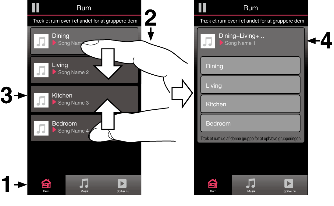 Alle dine rum samles og begynder at afspille samme musik helt synkront.
