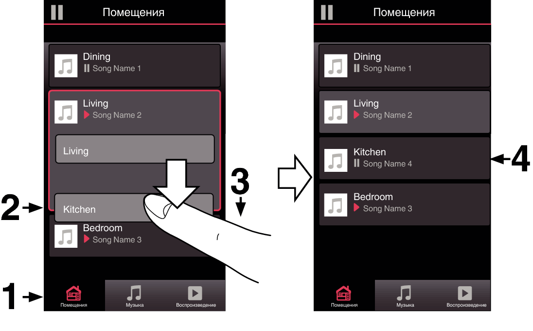В помещении, удаленном из группы, музыка более воспроизводиться не будет, однако она будет воспроизводиться в оставшихся помещениях.