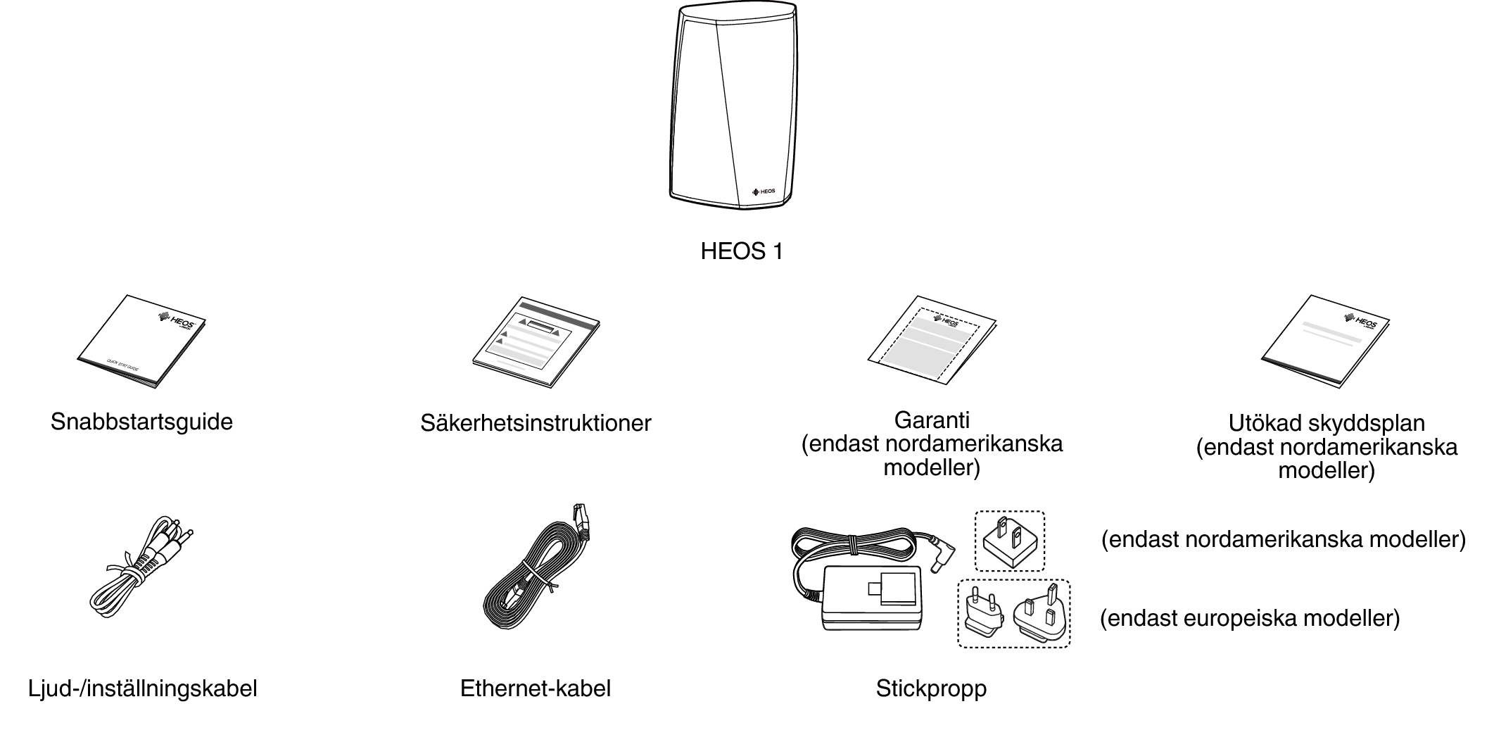 Packa upp högtalaren från lådan och kontrollera att följande föremål finns inkluderade: