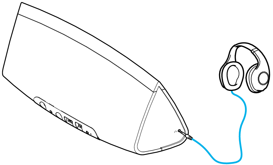 Sie können Musik über Kopfhörer wiedergeben, indem Sie Ihren bevorzugten Kopfhörer an der 3,5-mm-Kopfhörerbuchse an der Seite des Lautsprechers HEOS 7 anschließen. Wenn Sie einen Kopfhörer an der Buchse anschließen, wird keine Musik mehr aus den eingebauten Lautsprechern wiedergegeben. Die Wiedergabe wird fortgesetzt, wenn der Kopfhörer getrennt wird.