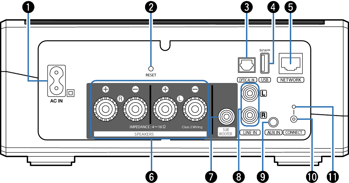 Usata per collegare questa unità a un subwoofer amplificato. superiore