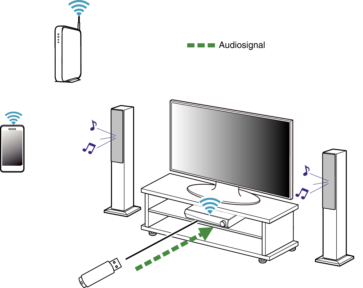 Schließen Sie ein mit FAT32 formatiertes USB-Speichergerät am USB-Anschluss auf der Rückseite des HEOS AVR an.