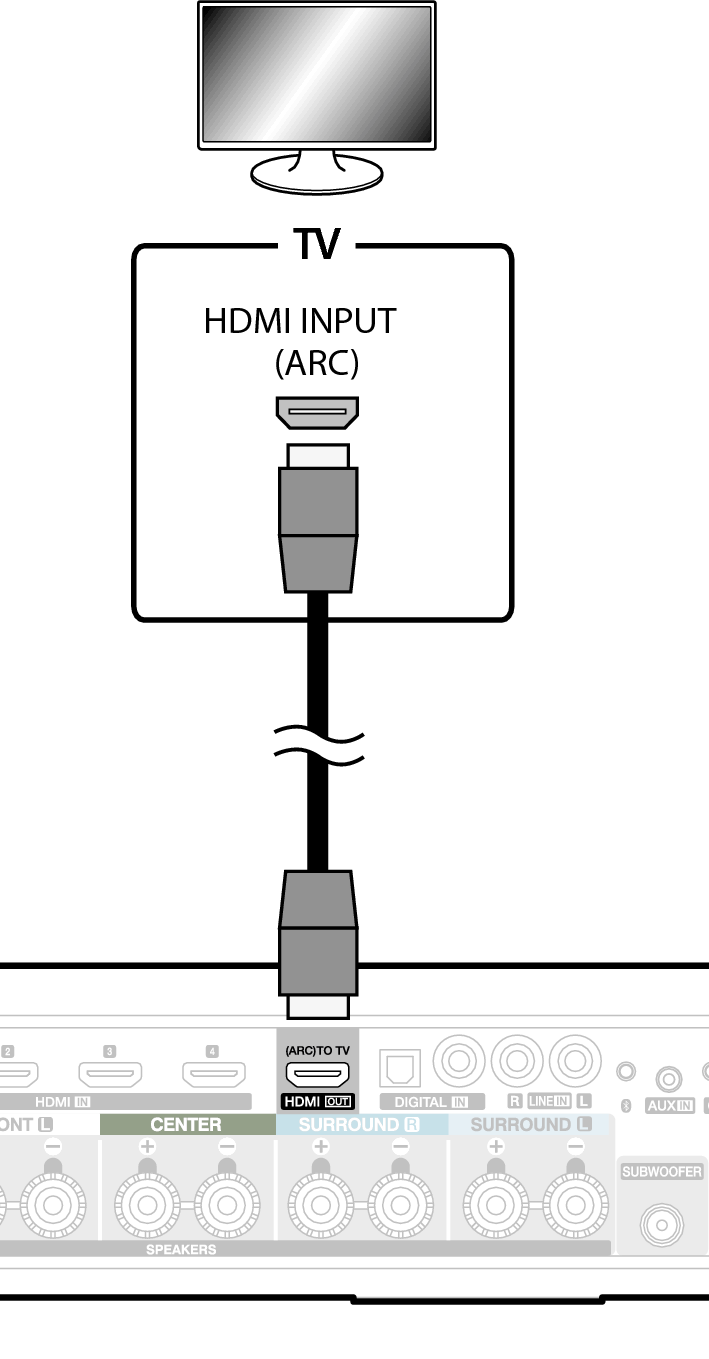 Schließen Sie Ihren Fernseher mit einem ARC-fähigen HDMI-Anschluss (ARC = Audio Return Channel) mithilfe des beiliegenden HDMI-Kabels an HDMI OUT (ARC) an Ihrem HEOS AVR an.