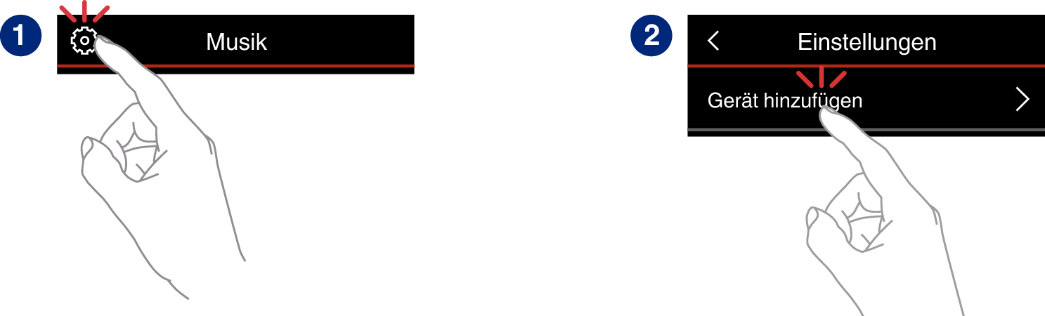 Sie können Ihrem HEOS-System weitere drahtlose HEOS-Geräte hinzufügen, indem Sie im Einstellungsmenü der HEOS-App “Gerät hinzufügen” auswählen und den Anleitungen folgen: