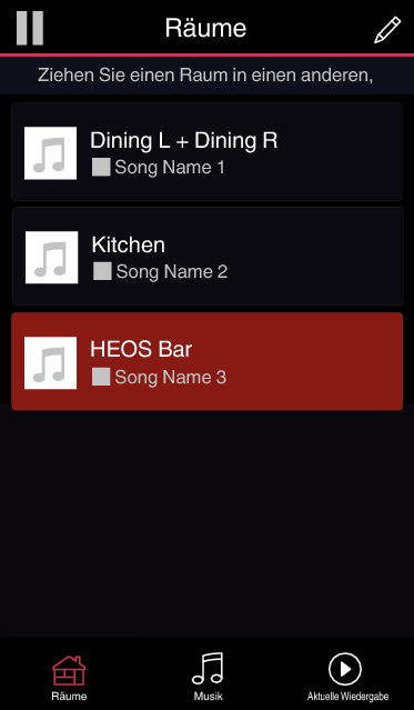Tippen Sie auf die Registerkarte “Räume” und wählen Sie HEOS Bar, wenn mehrere HEOS-Geräte vorhanden sind.