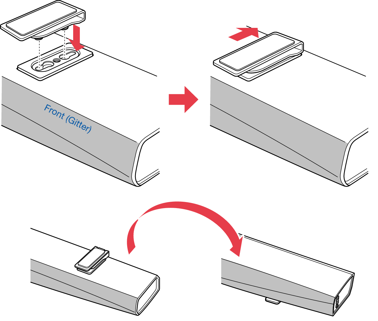 Bringen Sie die mitgelieferten Füße an, wenn Sie die HEOS Bar über dem Standfuß Ihres Fernsehers ausrichten müssen.