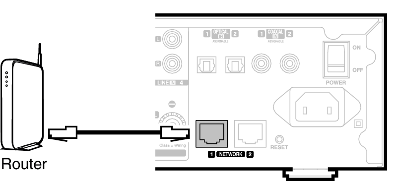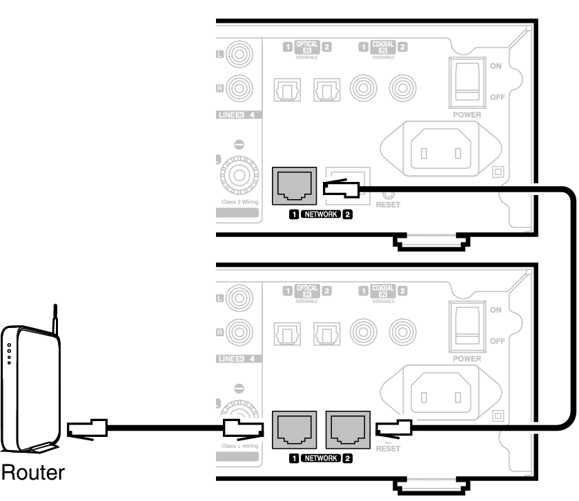 Über die zweite Ethernet-Verbindung können Sie einen weiteren HEOS Drive mit Ihrem Netzwerk verbinden.