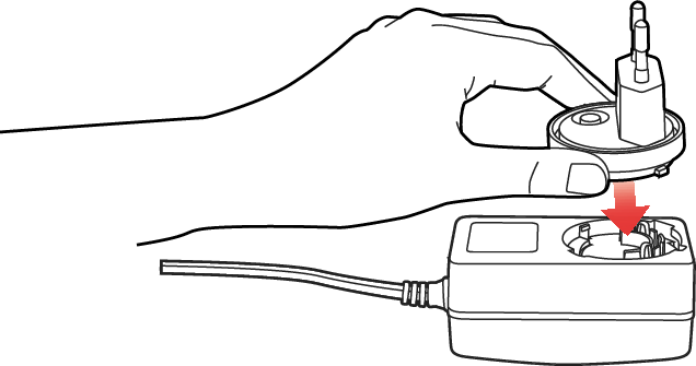 Вставьте подходящий адаптер в источник питания (убедитесь, что он защелкнулся должным образом).