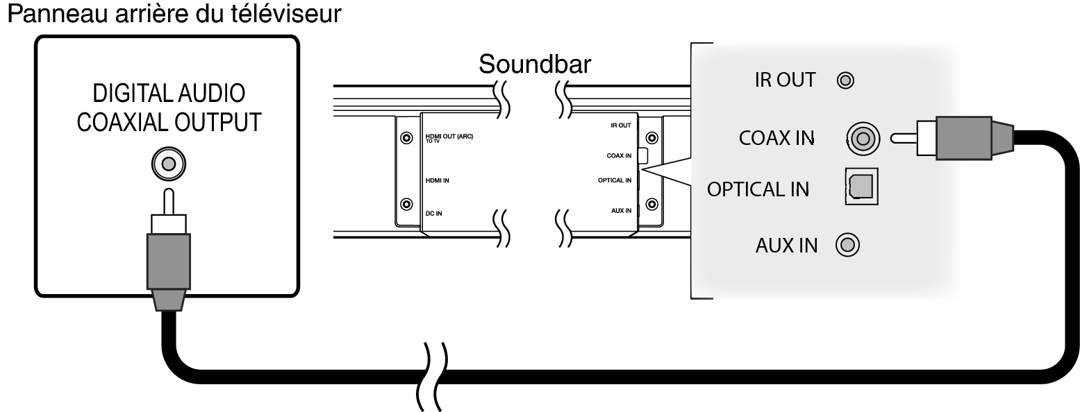 Raccordez votre téléviseur avec une sortie optique sur la borne COAX IN de votre HEOS HomeCinema à l’aide d’un câble de type “RCA” (non fourni).