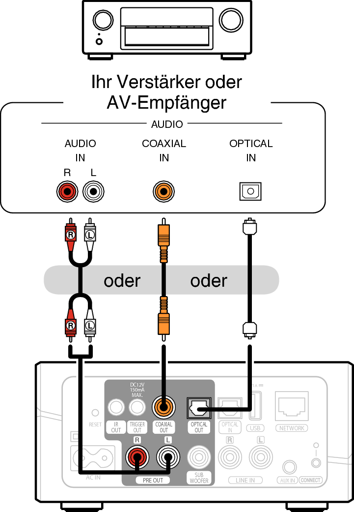 Anschließen an einen Verstärker oder AV-Empfänger