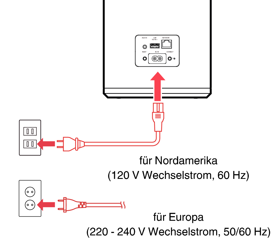 Schließen Sie das in der Packung mitgelieferte Netzkabel an der Rückseite des HEOS Subwoofers und den Stecker an einer Wandsteckdose an.