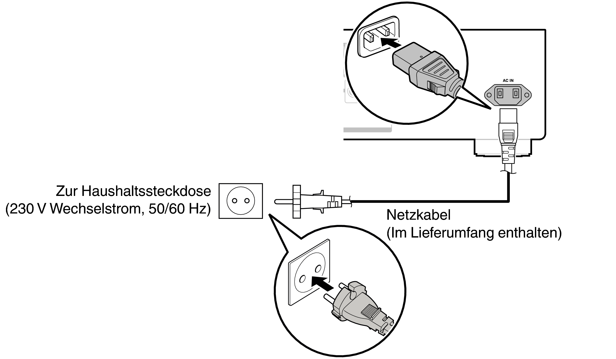 Nehmen Sie zuerst alle anderen Anschlüsse vor, bevor Sie das Netzkabel anschließen.