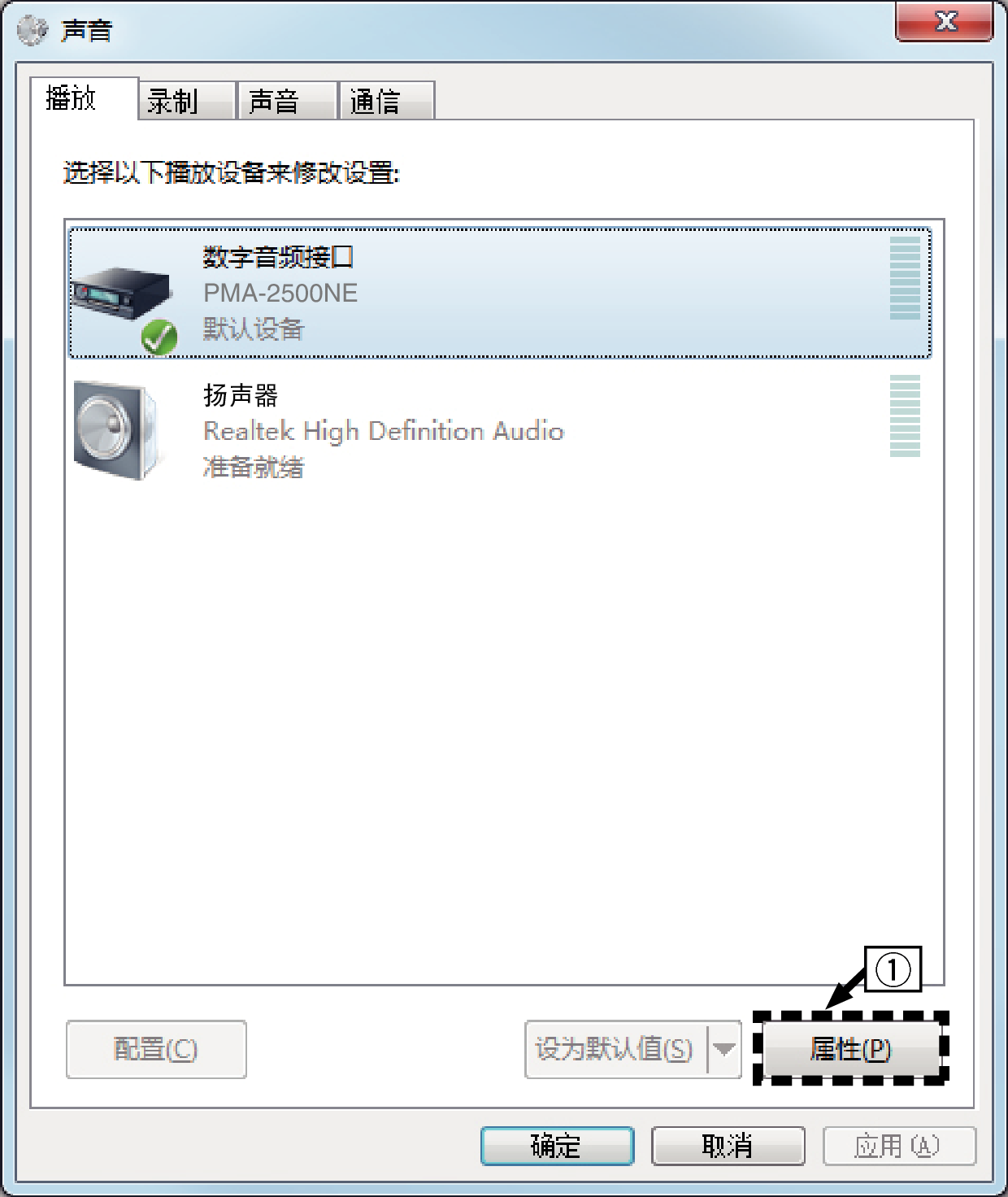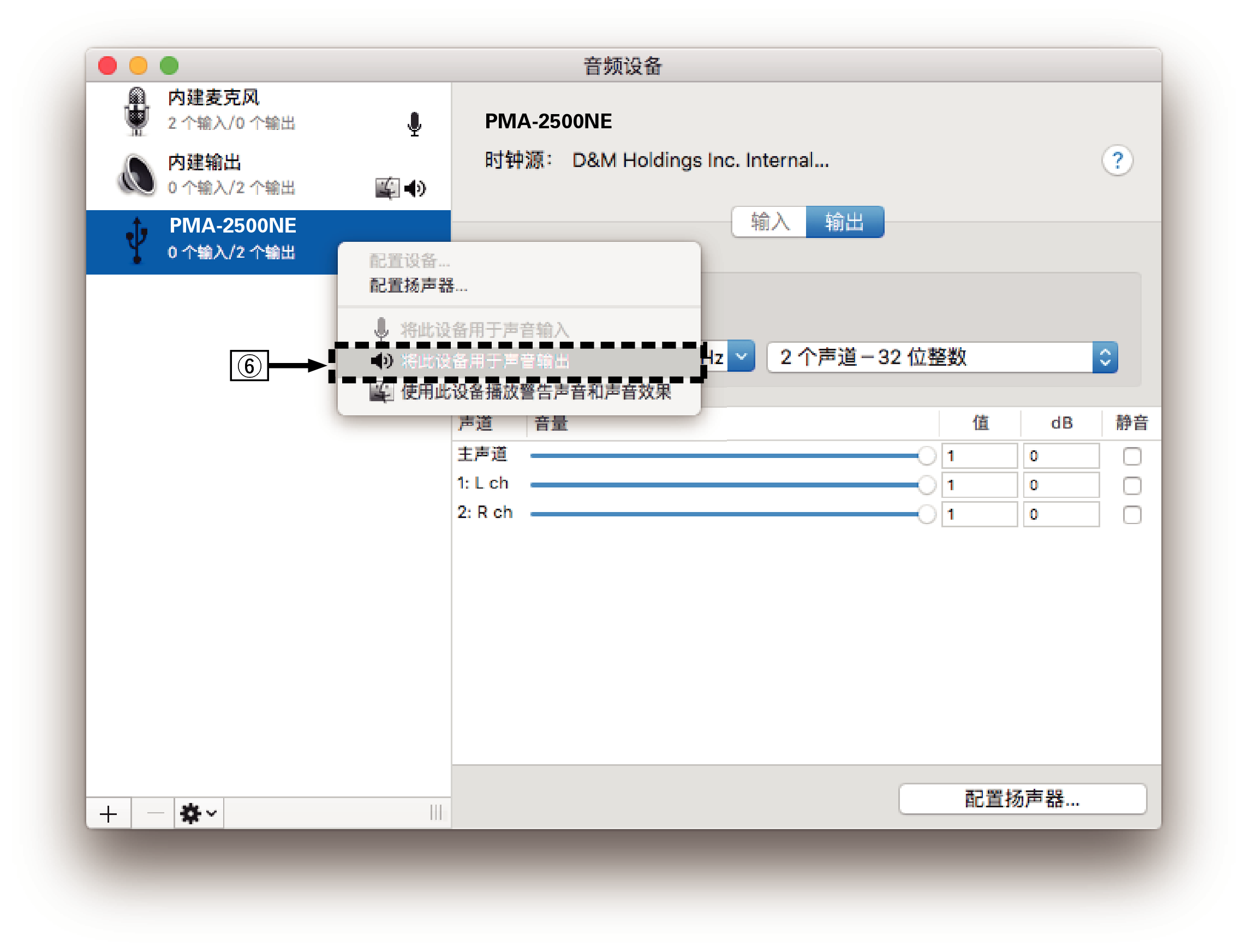 如果选中了不同的设备,选择并“第二次点击”“PMA-2500NE”,然后选择“将此设备用于声音输出”。
