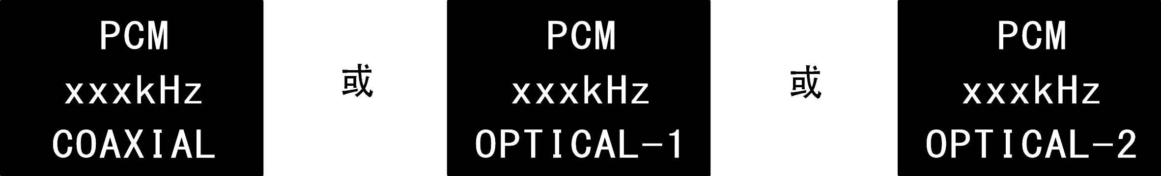 键将输入源切换为“COAXIAL”、“OPTICAL-1”和“OPTICAL-2”。将在显示屏中显示要深入的数字音频信号,如下所示。