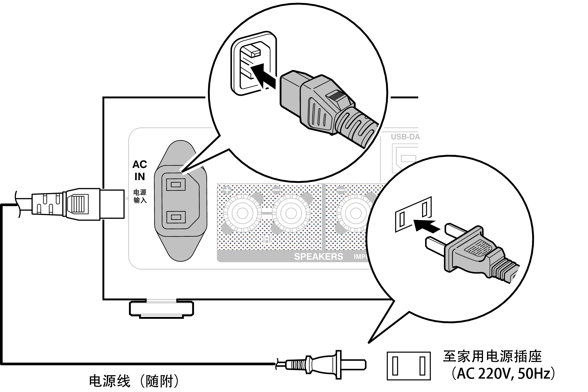 请在所有连接完成后连接电源线。