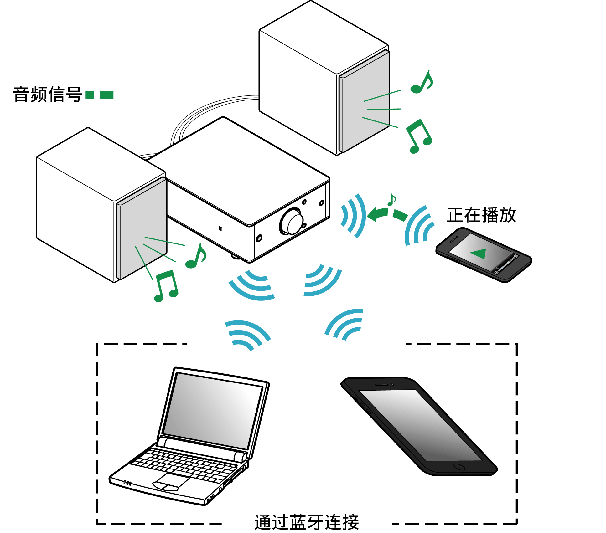)与正在播放音乐的蓝牙设备相接触时,本机将输出正在播放的音乐。