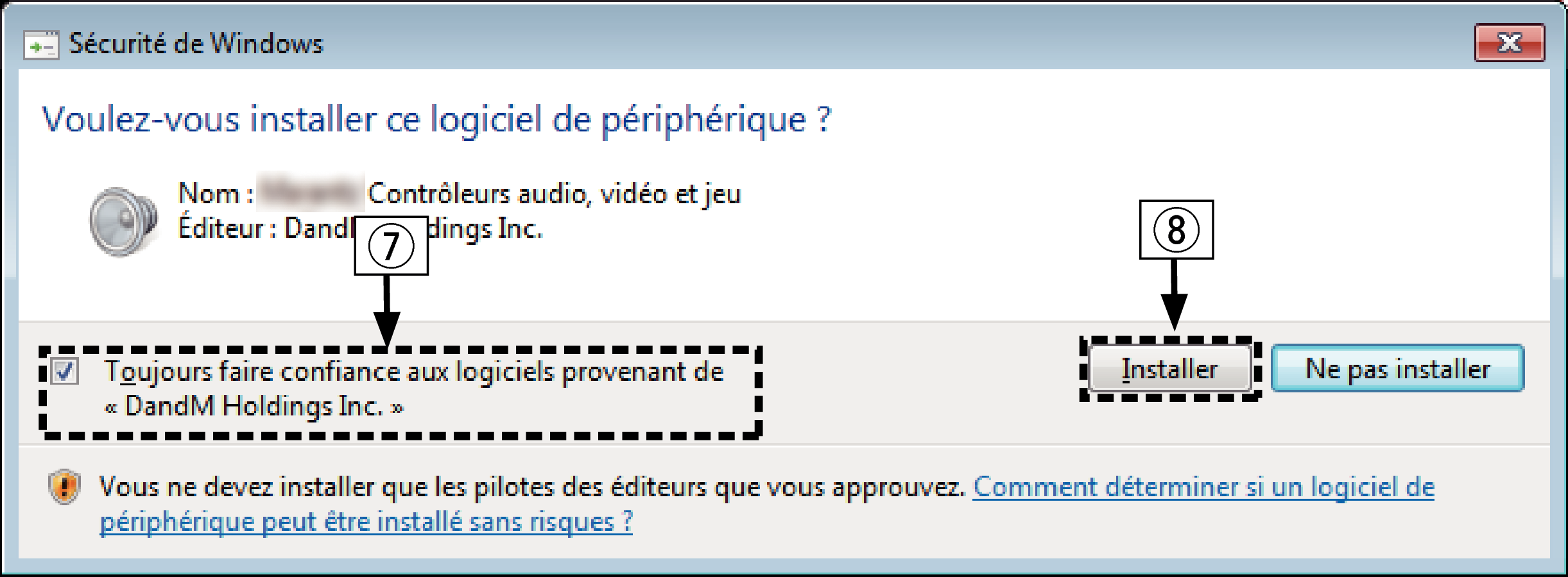 Installation du pilote dédié lien