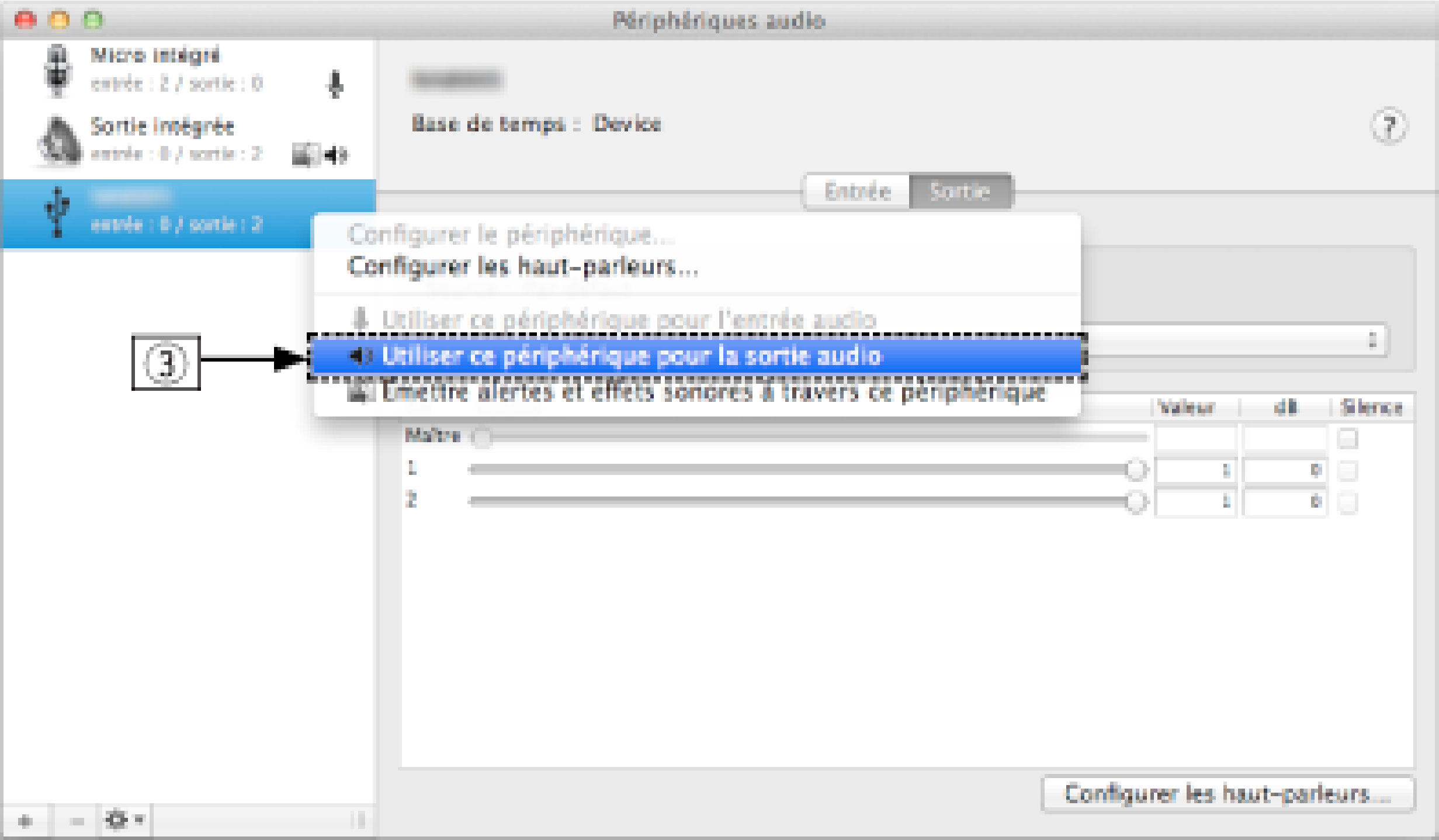 Paramètres du périphérique audio (Mac OS X uniquement)