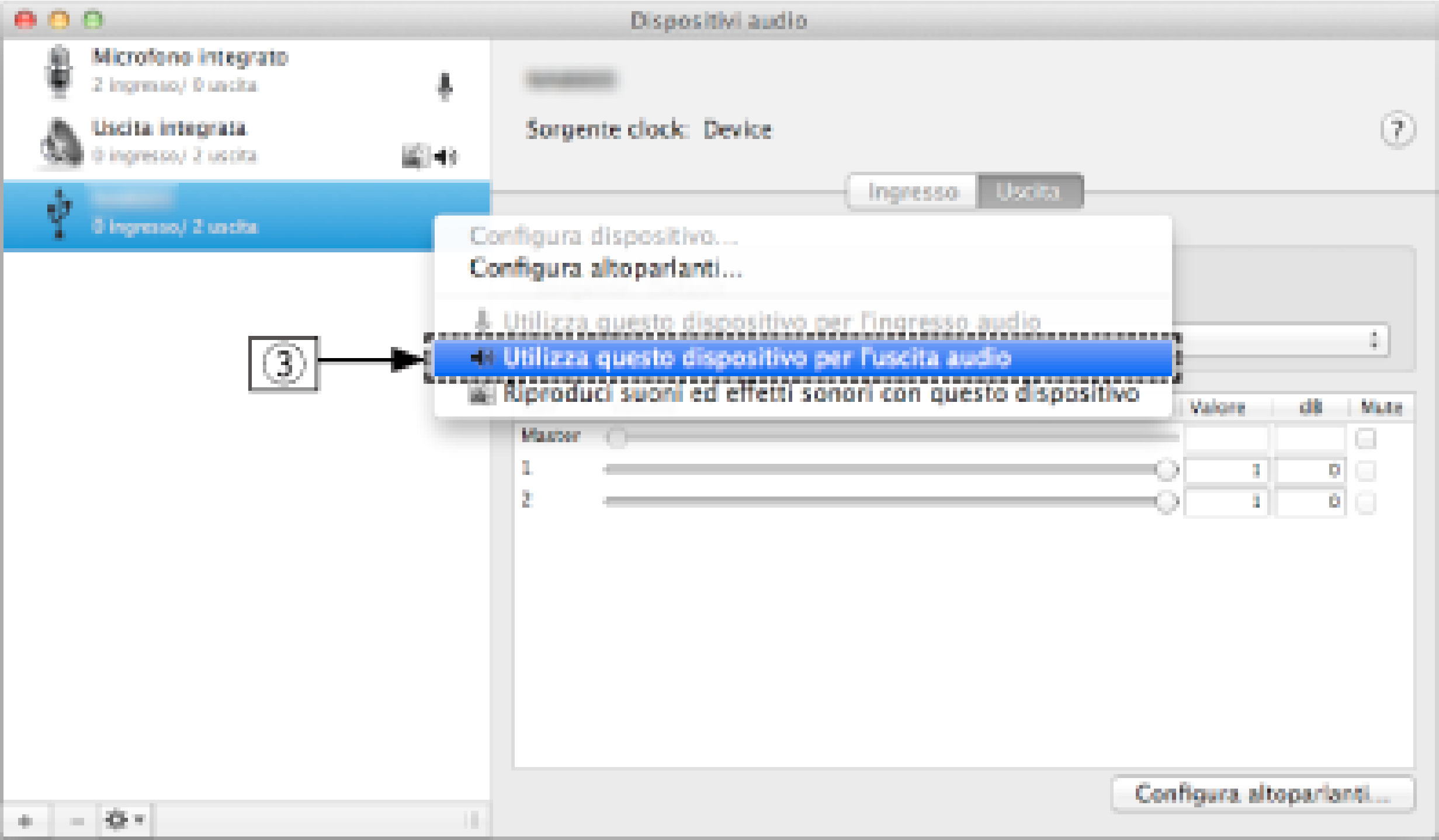 Impostazioni del dispositivo audio (solo Mac OS X)