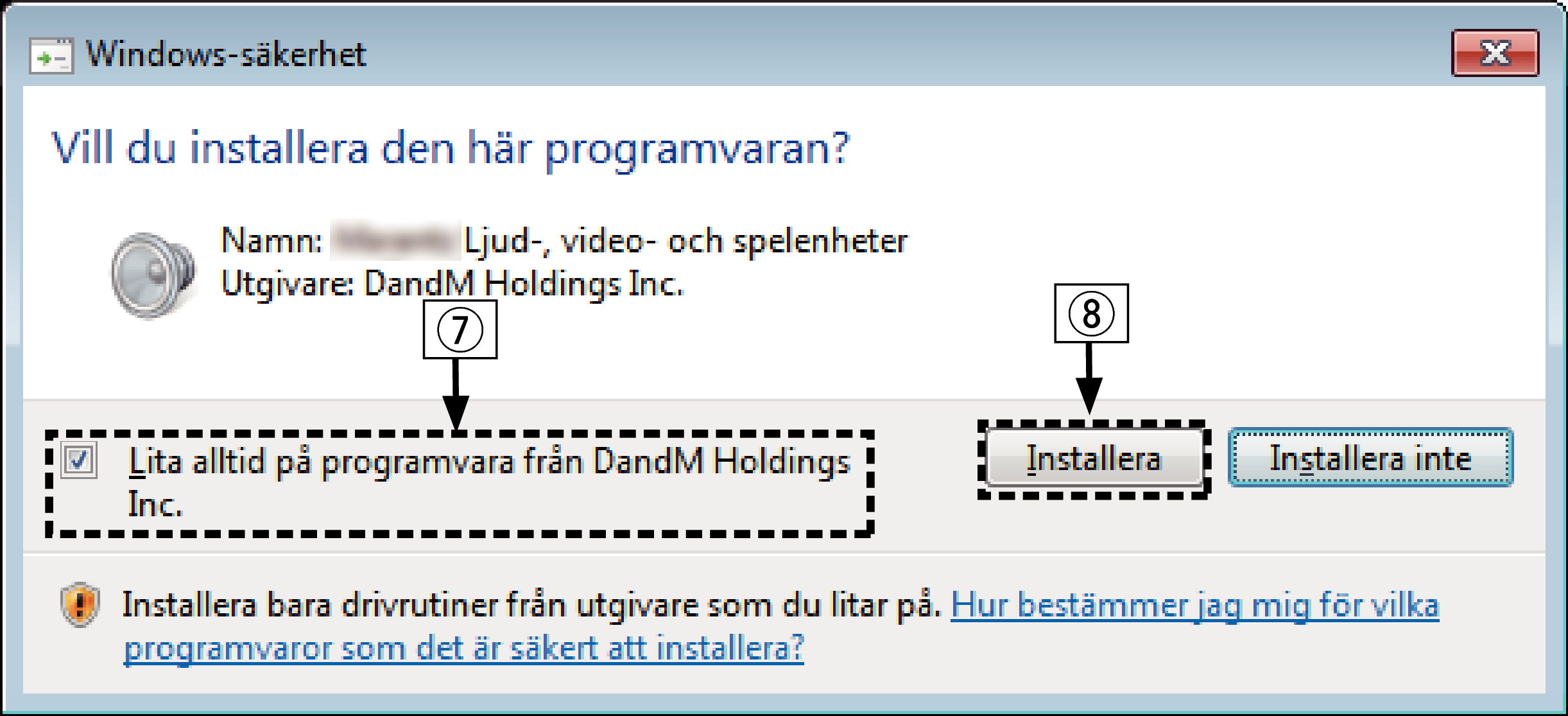 Den särskilda drivrutinen måste installeras på datorn innan den här enheten ansluts till datorn. Det kan bli funktionsfel om du ansluter enheten till datorn innan den särskilda drivrutinen har installerats.