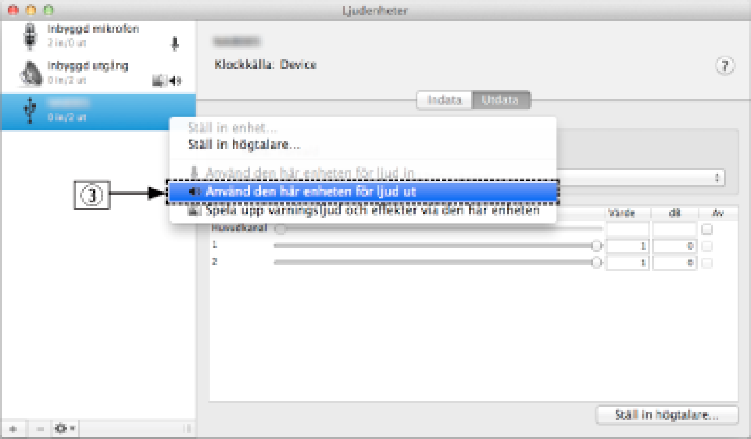 Om en annan enhet är markerad ska du markera och “alternativklicka” på “PMA-50” och sedan välja “Använd den här enheten för ljud ut”.
