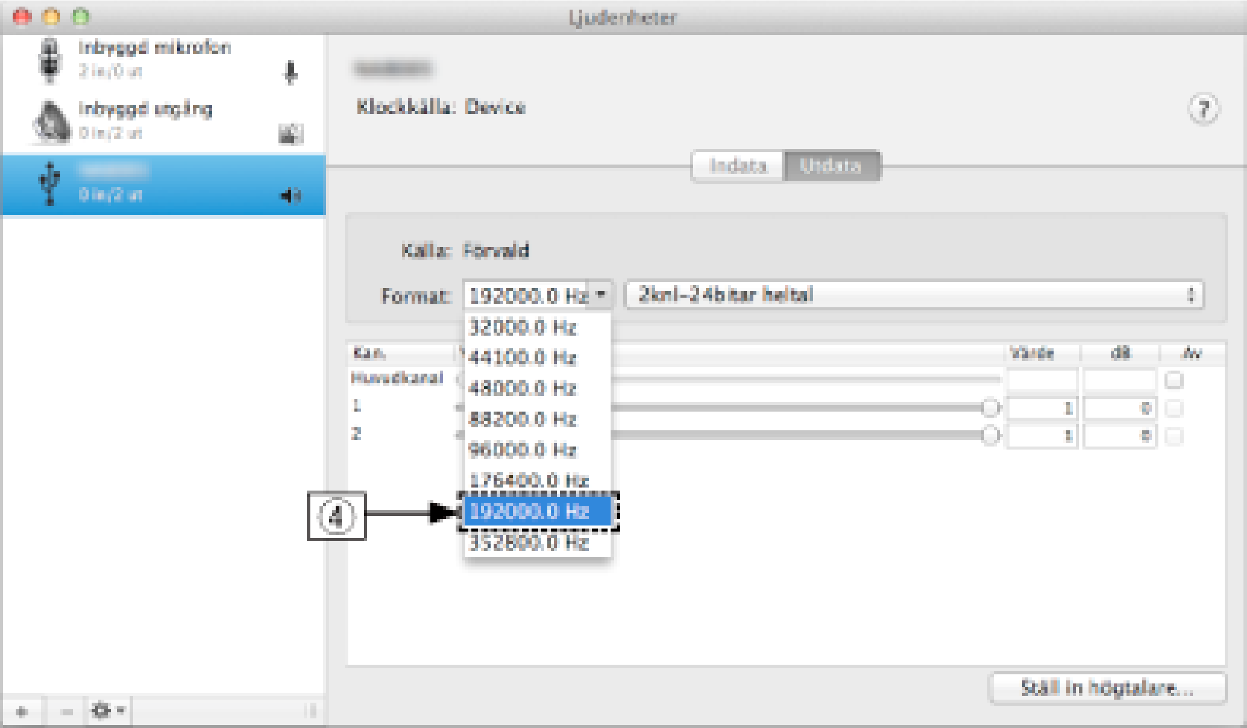 Vanligtvis rekommenderas att välja formatet “192000.0 Hz” och “2knl-24bitar heltal”.