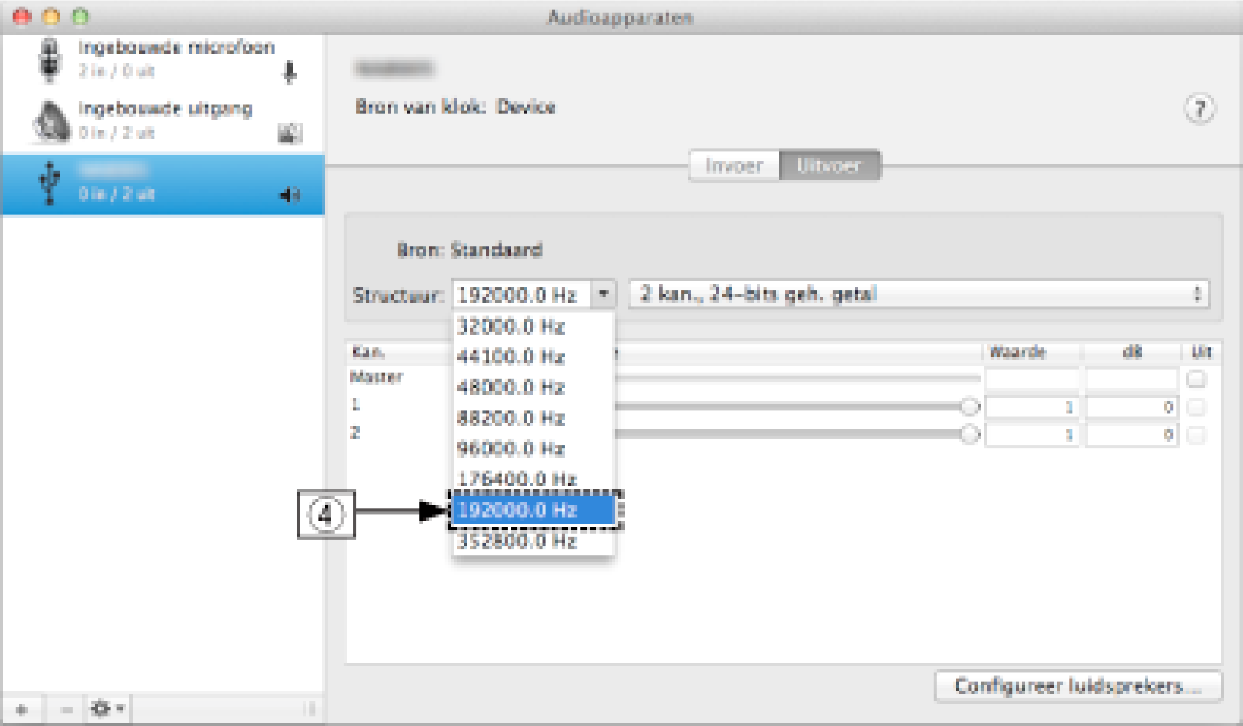 Het is normaal aanbevolen om het formaat in te stellen op “192000.0 Hz” en “2 kan., 24-bits geh. getal”.