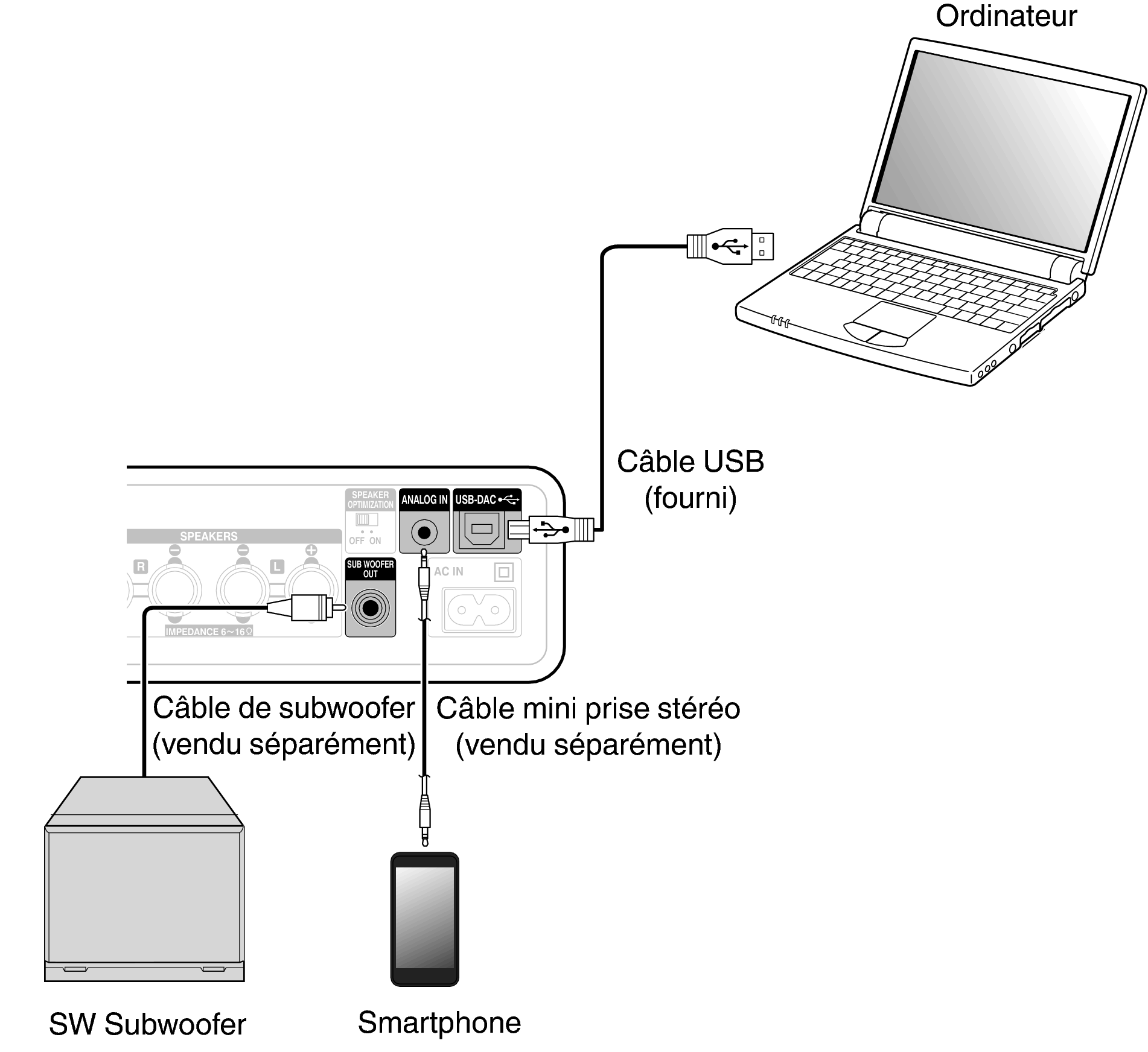 Utilisez un câble de 3 m ou moins pour connecter un ordinateur.