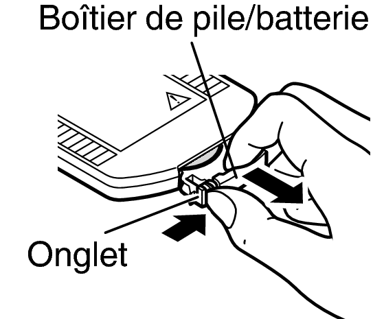 Retirez le boîtier de la pile/batterie tout en appuyant sur l’onglet.