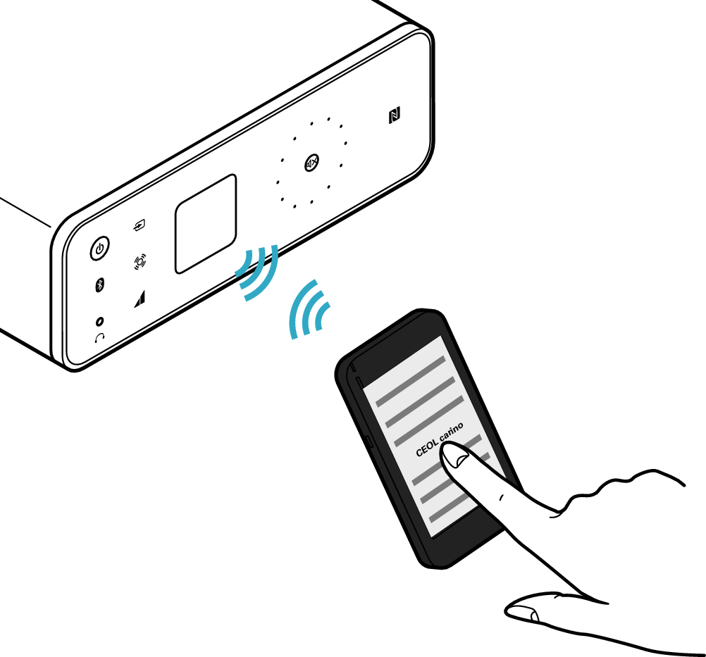 Kiedy “CEOL carino” nie jest wyświetlane na ekranie urządzenia Bluetooth, wyszukaj urządzeń na urządzeniu Bluetooth.