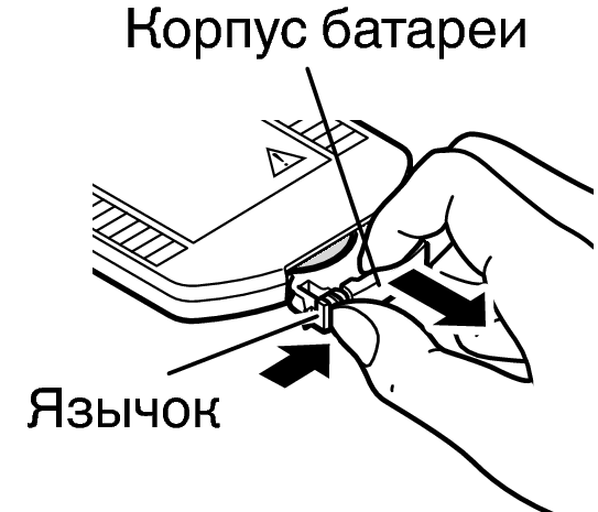 Вытяните корпус батареи, нажимая на язычок.