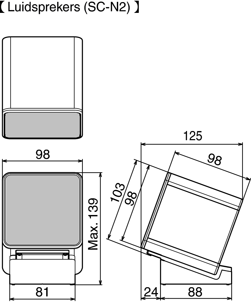 Luidsprekers (inclusief luidsprekervoet en kabelspoelen): 0,8 kg